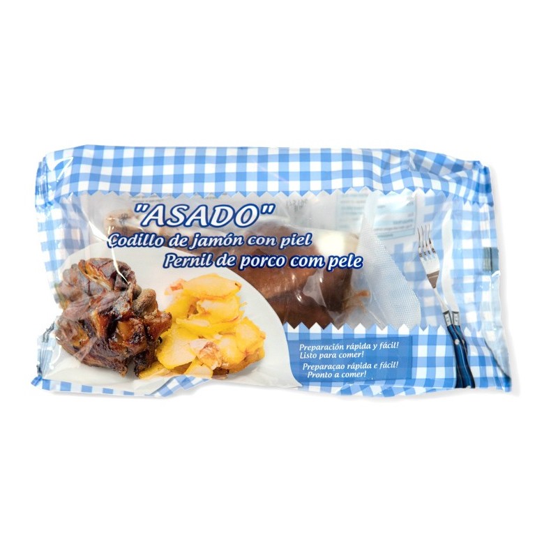 Modo de empleo: EN HORNO: retirar la bolsa y colocar el codillo en un recipiente en el hornoa 220ºC durante unos 15 min. Dar un toque final con 3 min. al grill.