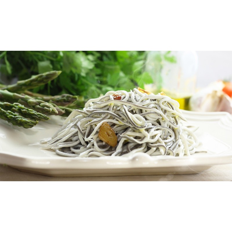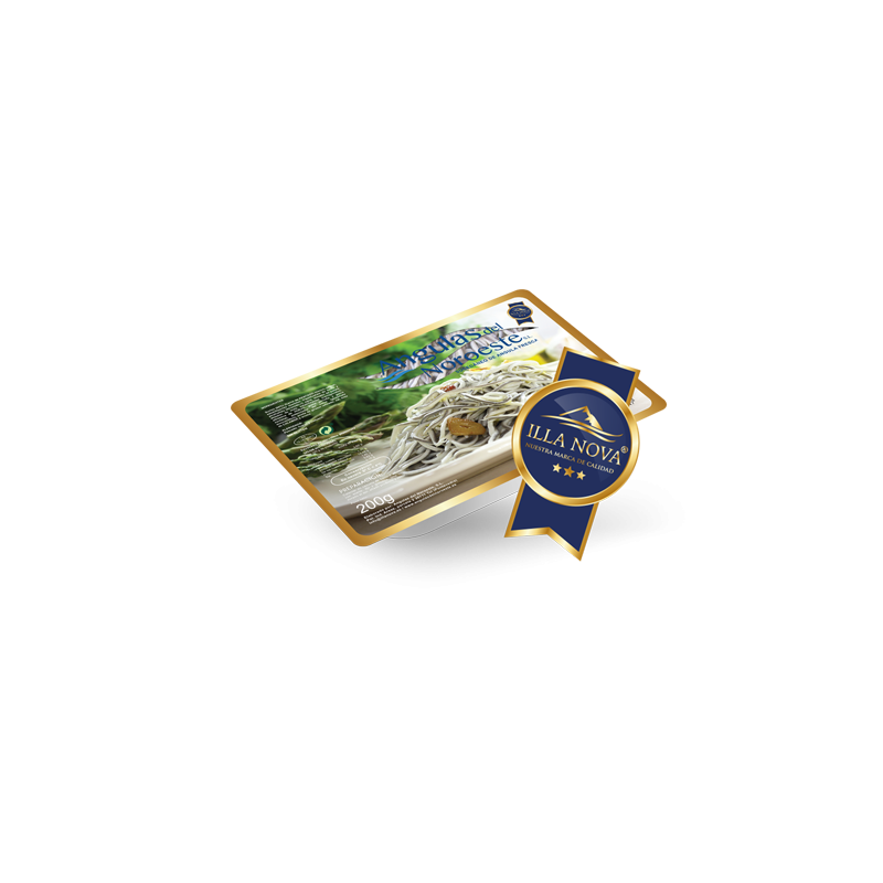 Ingredientes: Surimi 60% (PESCADO blanco, CEFALOPODO, azúcar, estabilizantes (sorbitos,tripolifosfato de sodio, pirofosfato tratrasódico y polifosfatos de sodio), agua, almidón de maíz,fécila de patata, estabilizantes (PES, goma xantana y goma guar), potenciador del sabor (glutamato monosódico) aceite de girasol refinado, sal tinta de CALAMAR y aroma.