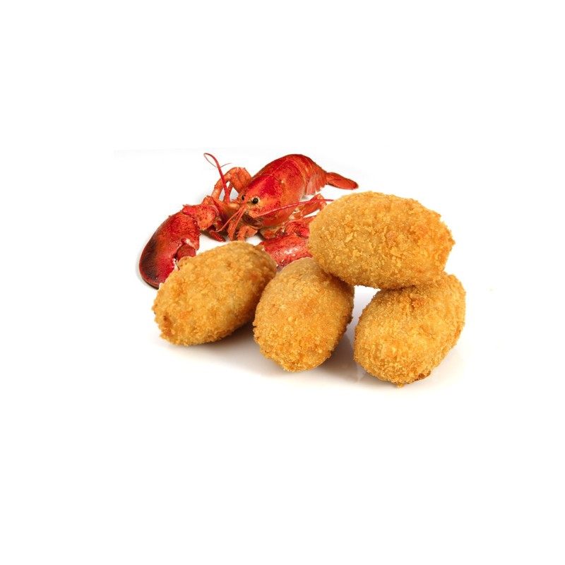 Ingredientes: Mesa de croqueta 85% (agua, harina de TRIGO, carne de BOGAVANTE 12%,LANGOSTINO (sal, estabilizantes E451, E452, antioxidante (METABISULFITO de sodio),cebolla, aceite de olica virgen extra, MANTEQUILLA, sal, base de caldo de PESCADO yMARISCO (cebolla, tomate y pimentón), NATA en polvo, aroma de humo y potenciador,glutamato monosódico y E365, pimentón), empanado 15% ( harina de TRIGO, aceite degirasol, levadura,conservantes para la harina).Modo de empleo Sin descongelar, freir en abuandante aceite caliente 175% durante 4-5 min,hasta wue estén bien doradas.