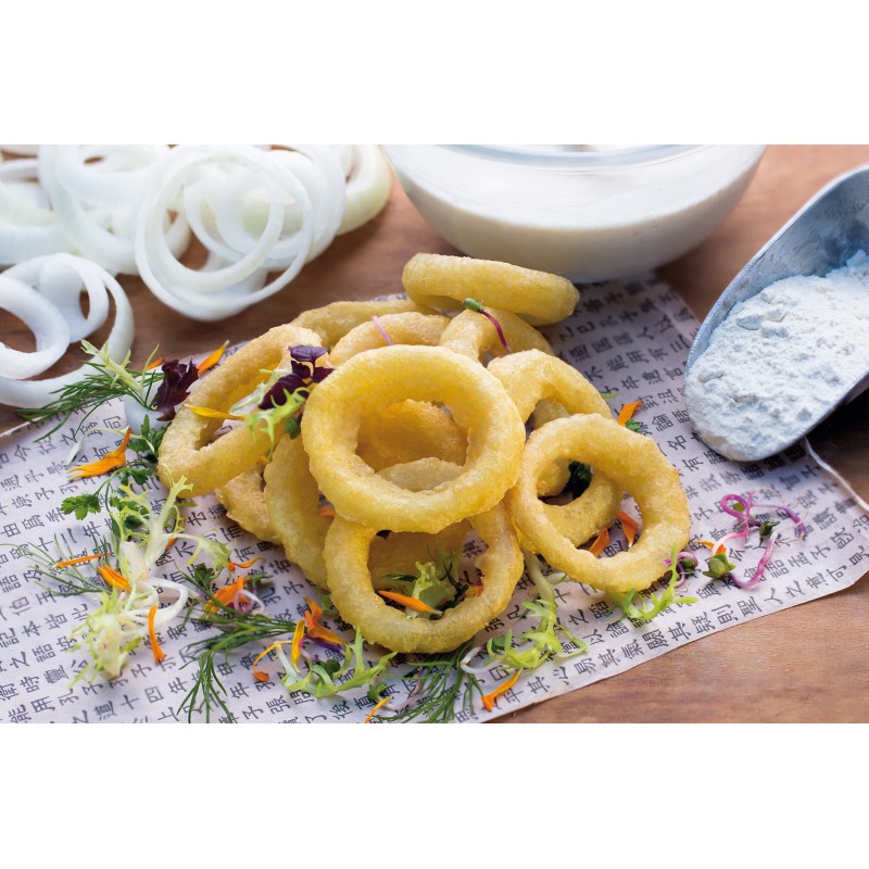 Ingredientes: Cebolla 38%, Rebozado 62% ( agua, harina de trigo, aceite de girasol, almidón de maíz, almidón de trigo, sal, levadura, gasificantes E-500, E4-450, espesante E-412, E-415 y colorante E-101.ALÉRGENOS: GLUTEN. Fabricado en unas instalaciones donde se manipula pescado, crustáceos, moluscos y queso.