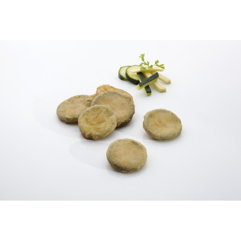 Ingredientes: Calabacín 42%, Rebozado 58% (agua, harina de trigo, aceite de girasol, sal, levadura, espesante E-1442, dextrosa de maíz, gasificante E-450, E-500, potencidador del sabor E-621 y colorante E-101).ALÉRGENOS: GLUTEN. Fabricado en una instalación donde se manipula pescado, crustáceos, moluscos y lácteos.
