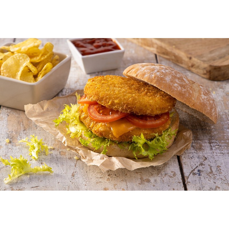 Elaborado de pollo con rebozado de cornflakes, que aporta una textura extra crujiente.
